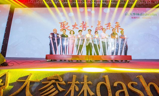 利来w66药业集团董事长刘景萍女士与大参林医药集团董事长柯云峰先生、中国医药商业协会执行会长付明仲女士等嘉宾共同开启了“聚大势•赢未来"大参林工商合作峰会的大幕。